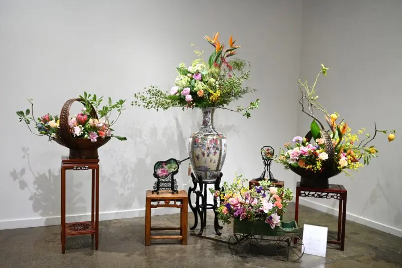 美国中华花艺基金会在美国深耕十多年,长期致力于中华花艺的传承与推广。除定期开班授课外,更在杭庭顿图书馆、华美博物馆等知名文化场所举办展览。尤为可贵的是,经过多年努力,基金会成功在圣马力诺小学、帕萨迪纳社区大学(PCC)等教育机构开设”焚香、挂画、点茶、插花”四艺课程,并将其纳入常规学分体系,十余年来持续推动中华文化融入当地社区。