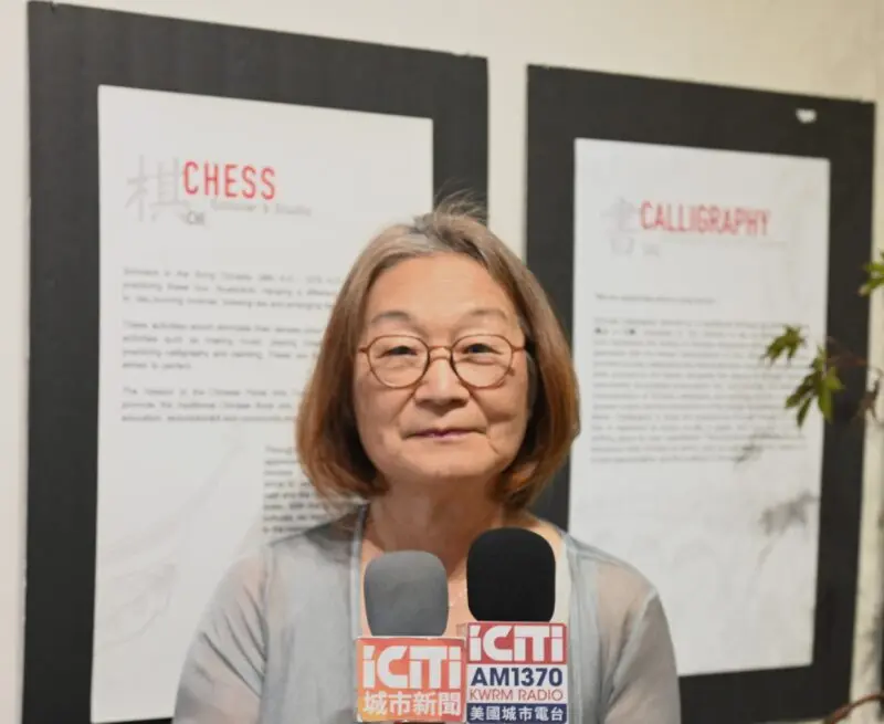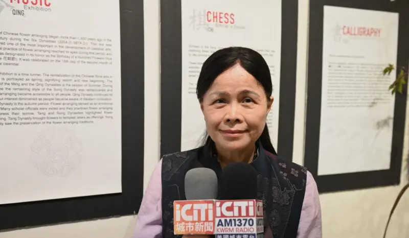 美国中华花艺基金会会长徐陶家琪接受各大媒体记者访问