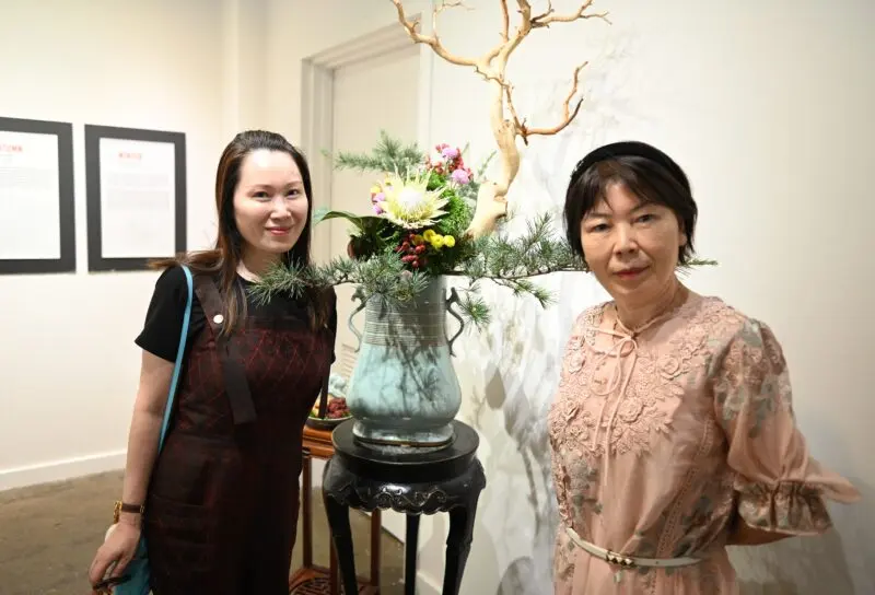 李丽淑教授(左)向来宾分享她四十余年推广中华花艺的心路历程