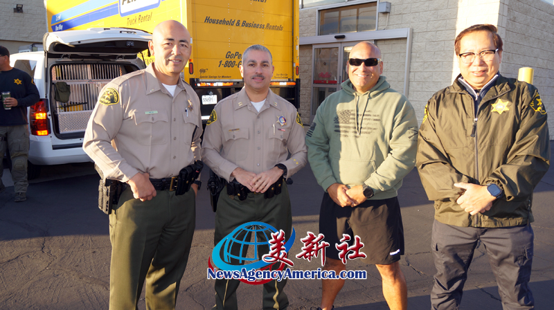 LASD天普分局局長 雷耶斯(Captain Mark Reyes,左2),LASD社区顾问、洛杉磯(羅省)中華總商會主席莊佩源等